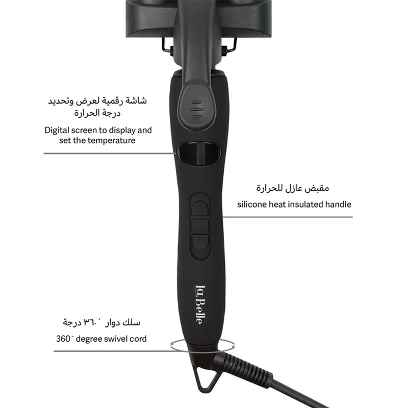 Description: Discover the secret to enduring waves with the Feeluxe Cascade Brush, presented in sleek black. Its clear digital display offers fingertip temperature control, and the brush heats in moments, ready to sculpt your hair. Gentle, even heat distribution crafts exquisite waves that last, inspiring confidence in your every curl.